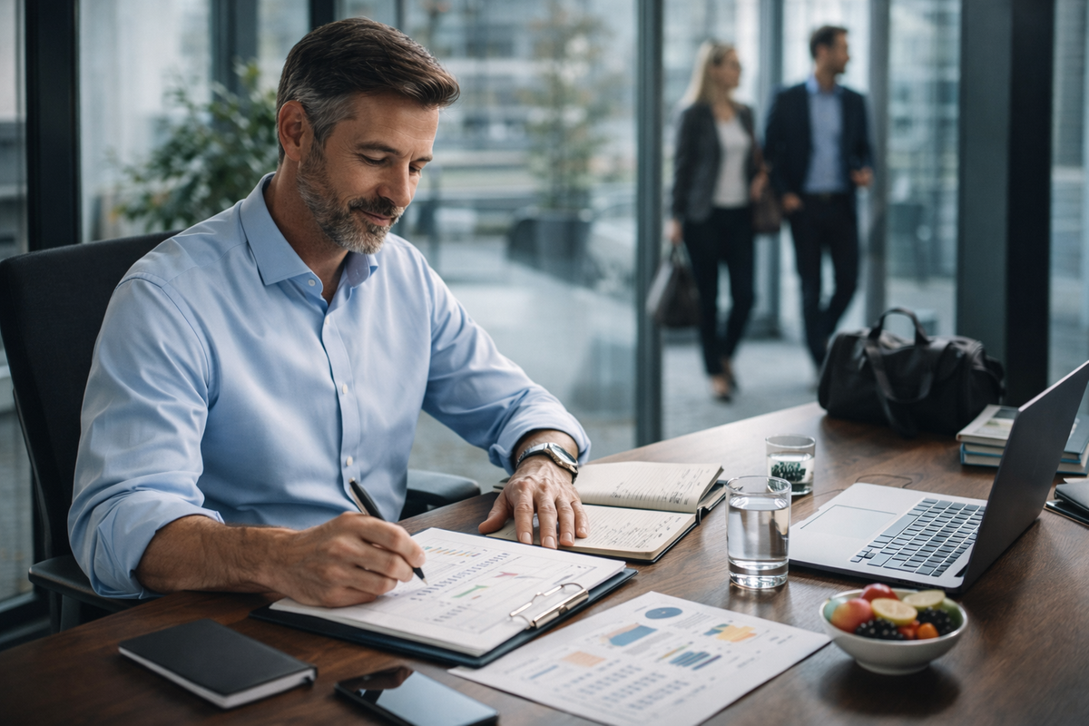 Jídlo, pitný režim a odpočinek patří mezi první věci, které manažeři pod tlakem často zanedbávají. Paradoxně právě nedostatek energie bývá mnohdy spouštěčem ještě vyššího stresu. Přestože to může znít samozřejmě, základem zvládání stresu je vědomě si hlídat pravidelný režim – doplňovat energii, hydrataci a dopřát si prostor na regeneraci.